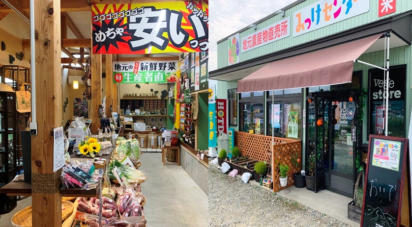 直売所(みっけセンター)写真左:店内 写真右:外観