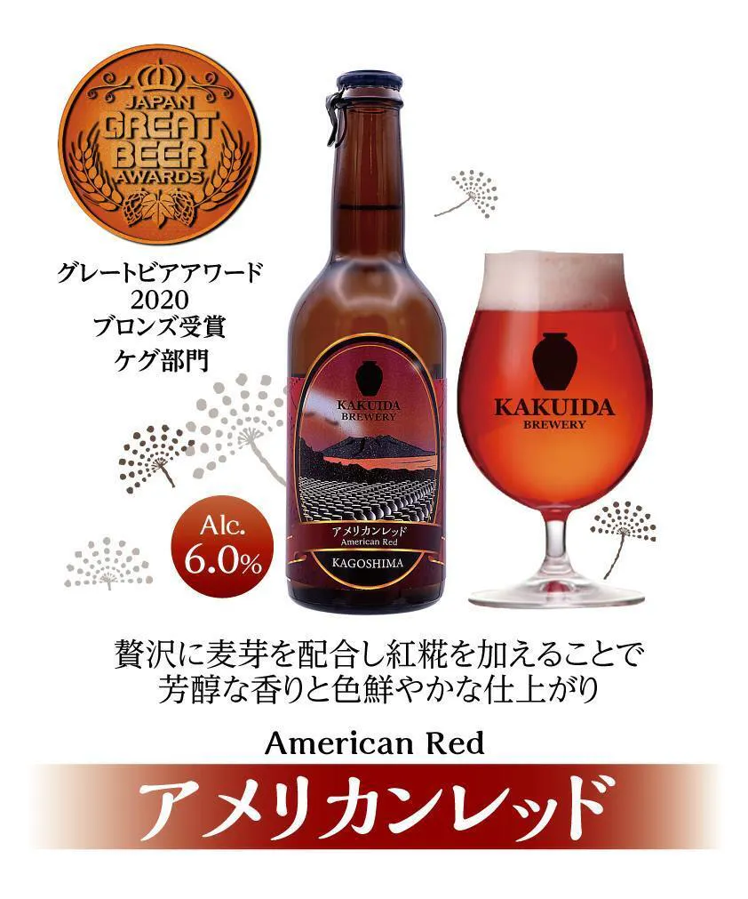 樽部門で「グレートビアアワード2020」銅賞受賞。原料に大麦麦芽とカラピルス、カラアロマを使い、芳ばしい麦芽の香りを造り、飲みやすいミディアムボディに仕上げております。また、副原料に紅糀を使用し、美しい赤色のエールビールになっております。