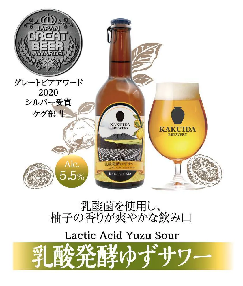ジャパン・グレートビア・アワード2020で銀賞受賞。醸造に乳酸菌を使用し、ほのかな乳酸の風味と柚子の香りがある、「旨いサワー」をビールの形にした、どこにもないテイストです。スッキリ爽やかなビールに仕上げていますので、酸味が苦手な方にも是非おすすめです。