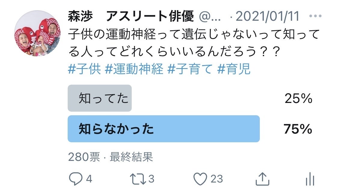 僕も子供ができて勉強してから知りましたが、以前自身のTwitterでアンケートを取ったら、