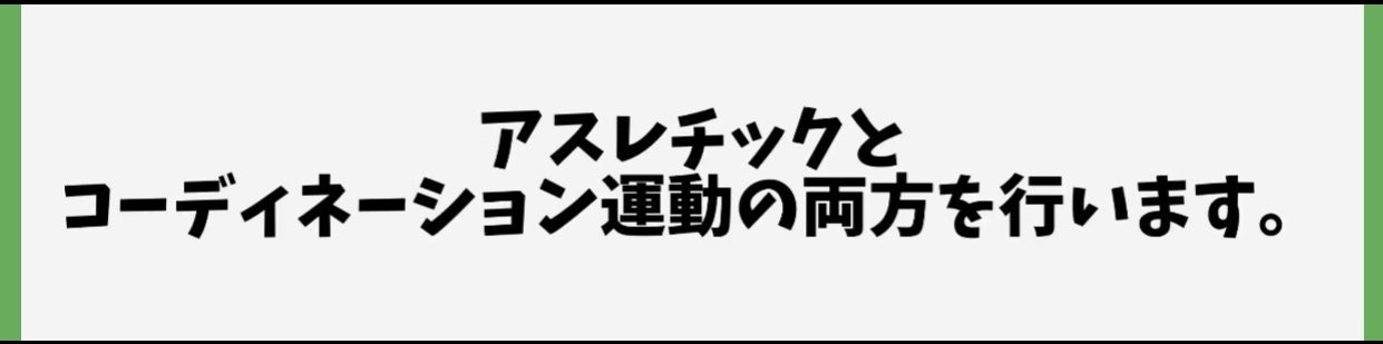 僕の教室ではトップアスリートも実践している【コーディネーション運動】(運動のセンスを高めるトレーニングや遊び)を独自のプログラムで取り入れて行います。