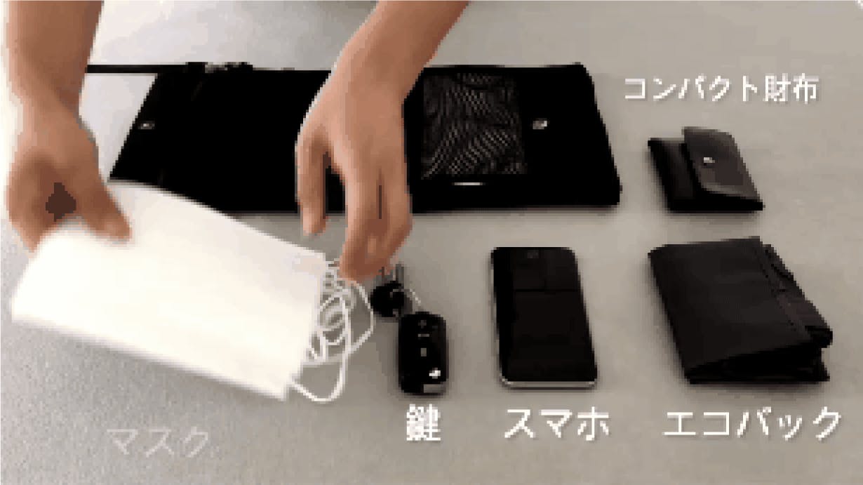 マスクだけではなく他の外出時の必需品(スマホ、財布、鍵、エコバックなど)をこれひとつでコンパクトに持ち運びできます。