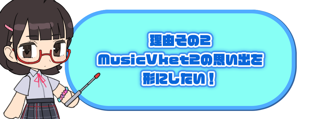 また、MusicVket 2という一生に一度のイベントを、かけがえのない思い出として大切にし、いつまでも形に残るようなものにしたい。