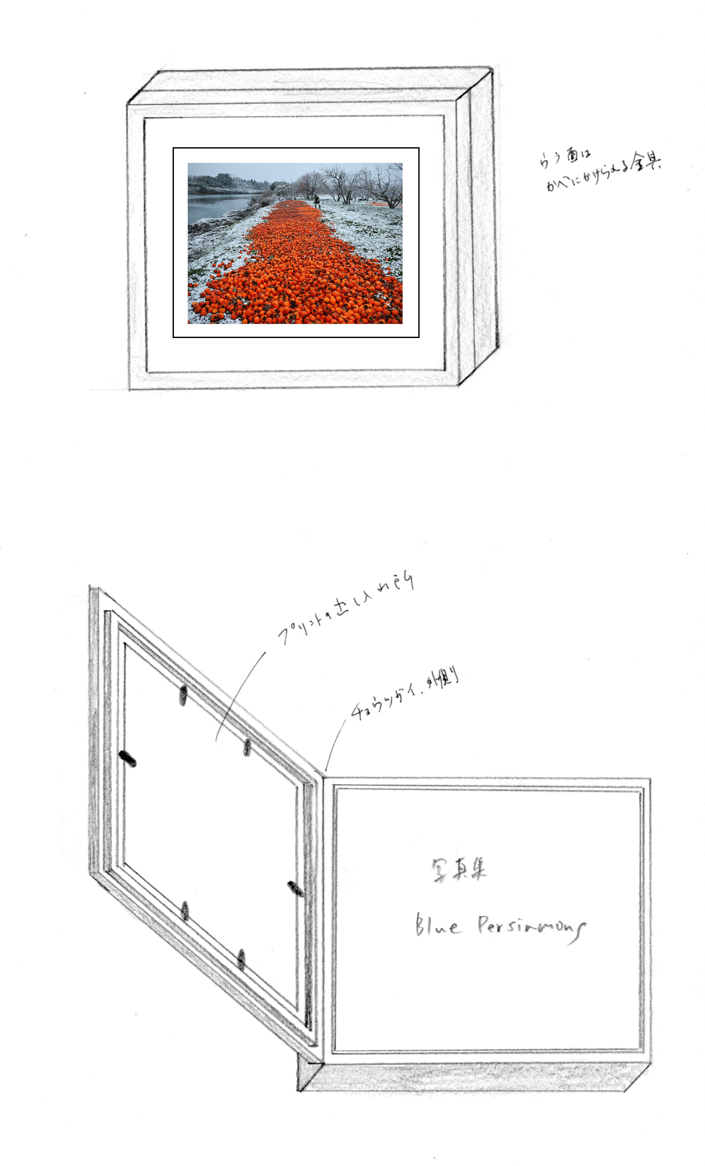 当プロジェクトで制作する写真集「Blue Persimmons ー青い柿ー」(直筆サイン入り)をお届けします。