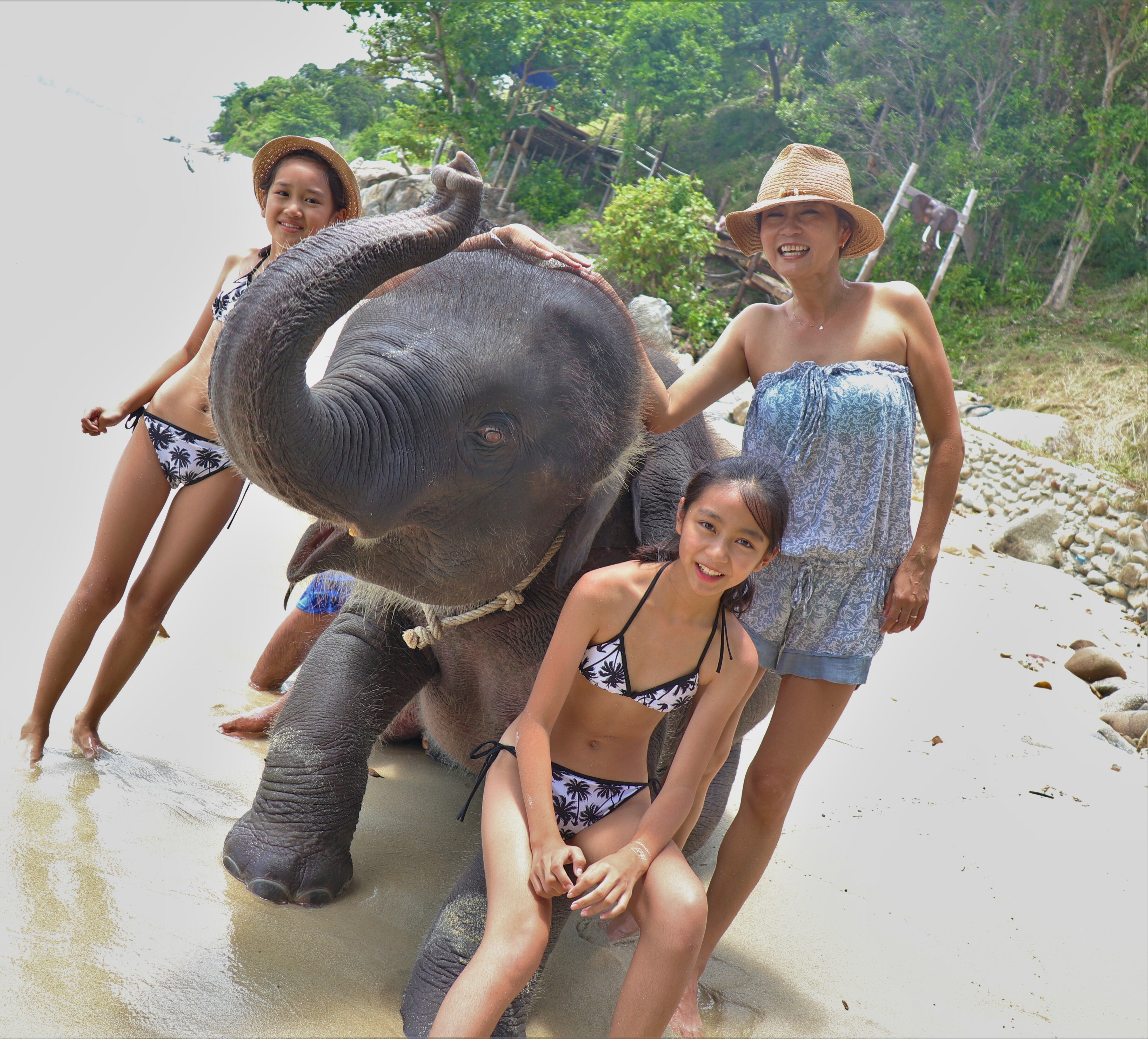 しかし、私達は象を砂浜に放置しっぱなしでもなく、お客様との写真撮影が終わるごとに、真水でシャワーを浴びさせ、林の中で食事を摂らせ、休憩もさせています。