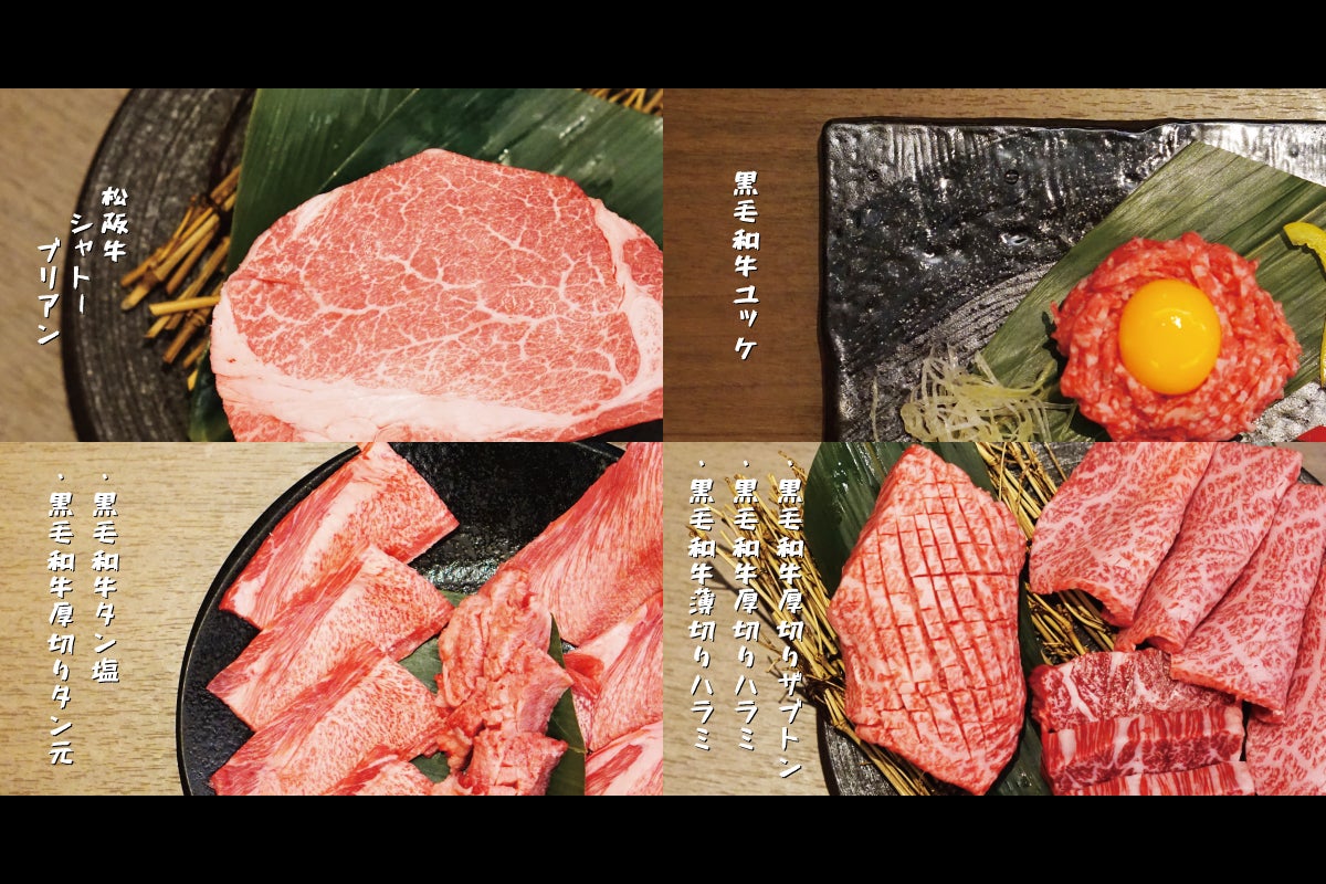 (黒毛和牛厚切りザブトン、黒毛和牛厚切りハラミ、黒毛和牛薄切りハラミ)