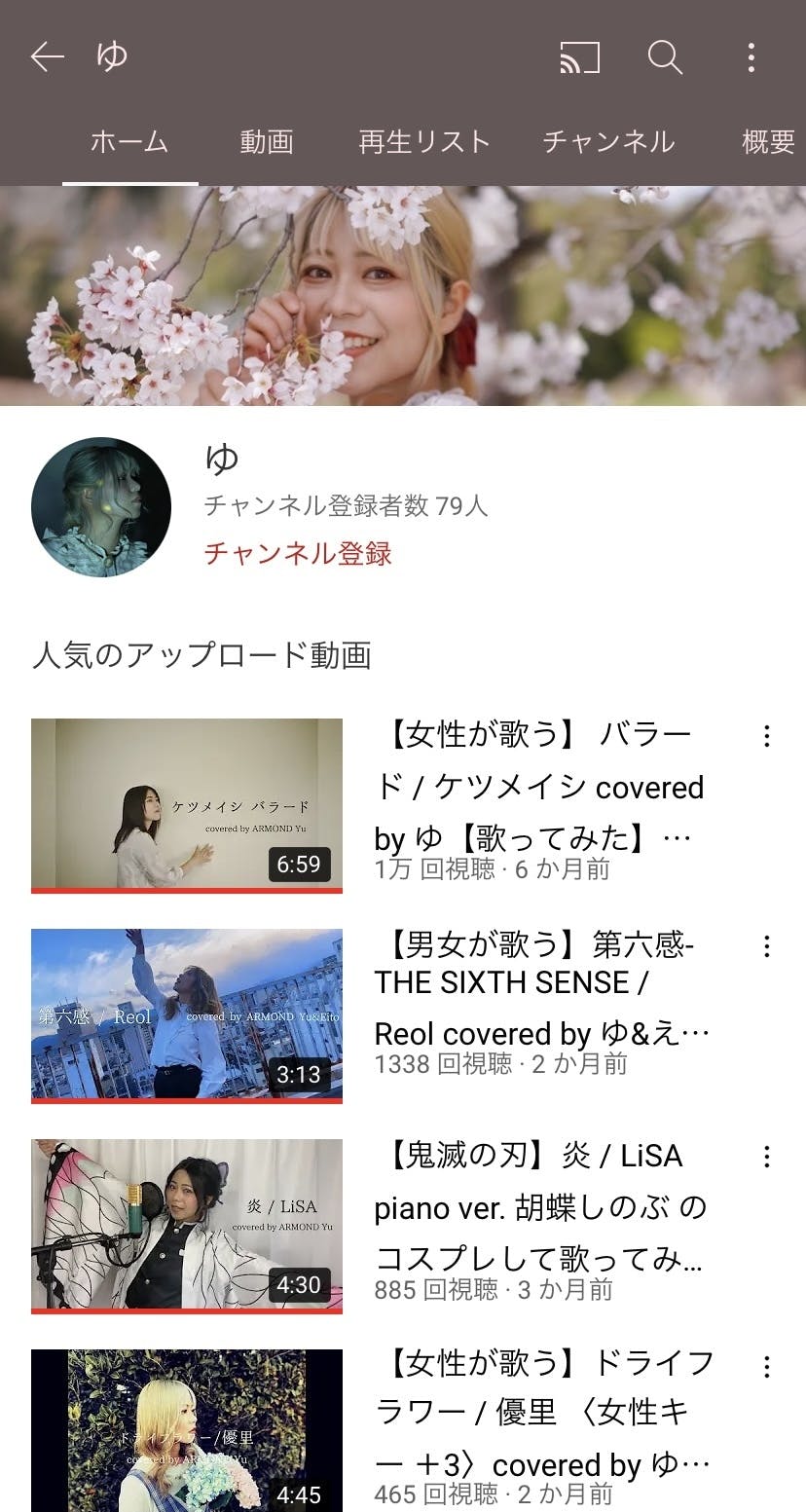 ・YouTubeチャンネルにてオリジナル曲およびカバー曲の動画を投稿