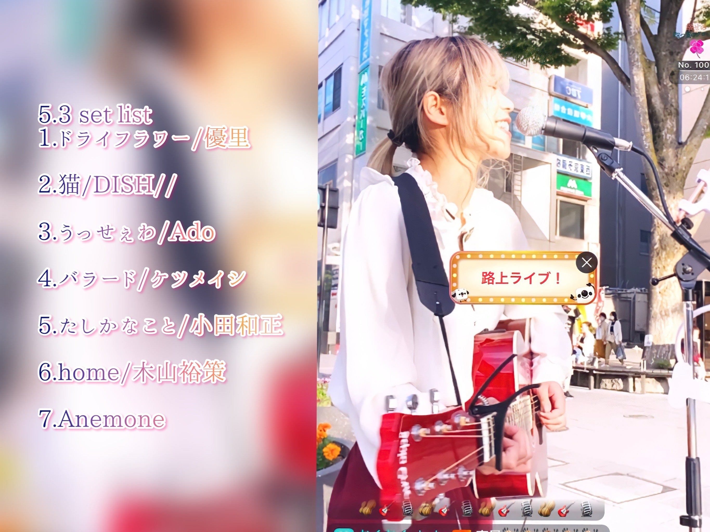 「よく路上ライブしている人をここで聴くけど、過去一うまいです!1位です」