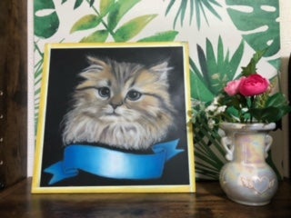 ペットちゃんのお写真を元に、世界に一枚だけの似顔絵チョークアート作品をお届けします。