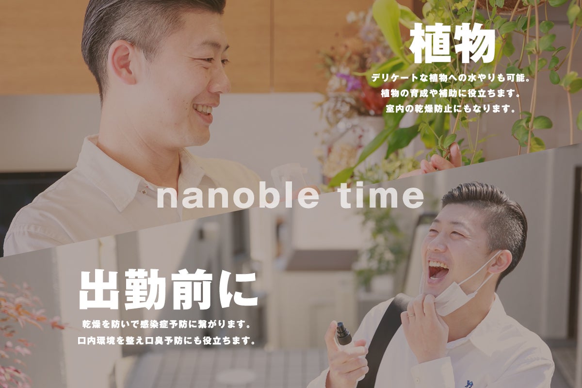 コンパクトナノバブル生成器「nanoble」で日々の生活に潤いをプラス。実証実験に基づいた活用事例をご紹介いたします。あなたが考えた用途をぜひ教えてください。皆様からの活用事例も募集中。皆で作る「nanoble」 のある新しい生活習慣。