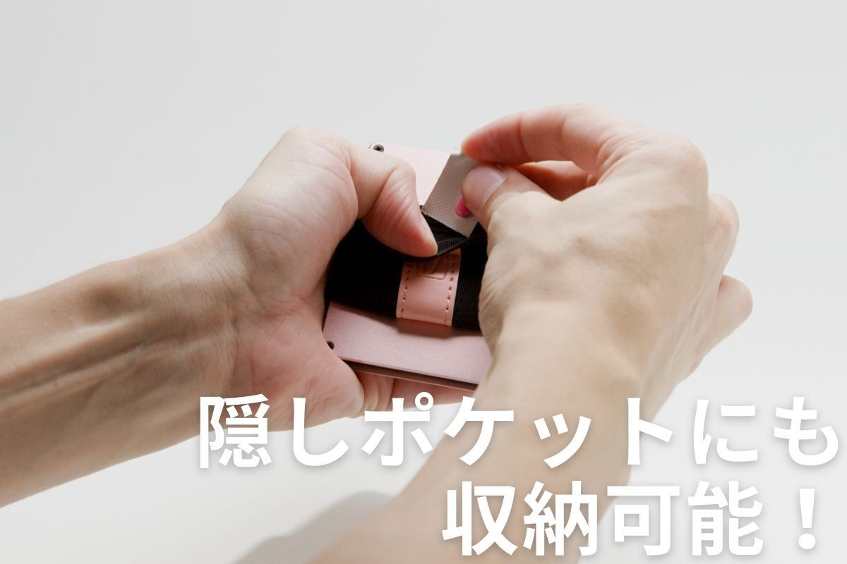 また、ウォレットの裏側に付いているバンドは、隠しポケットも兼ねています。