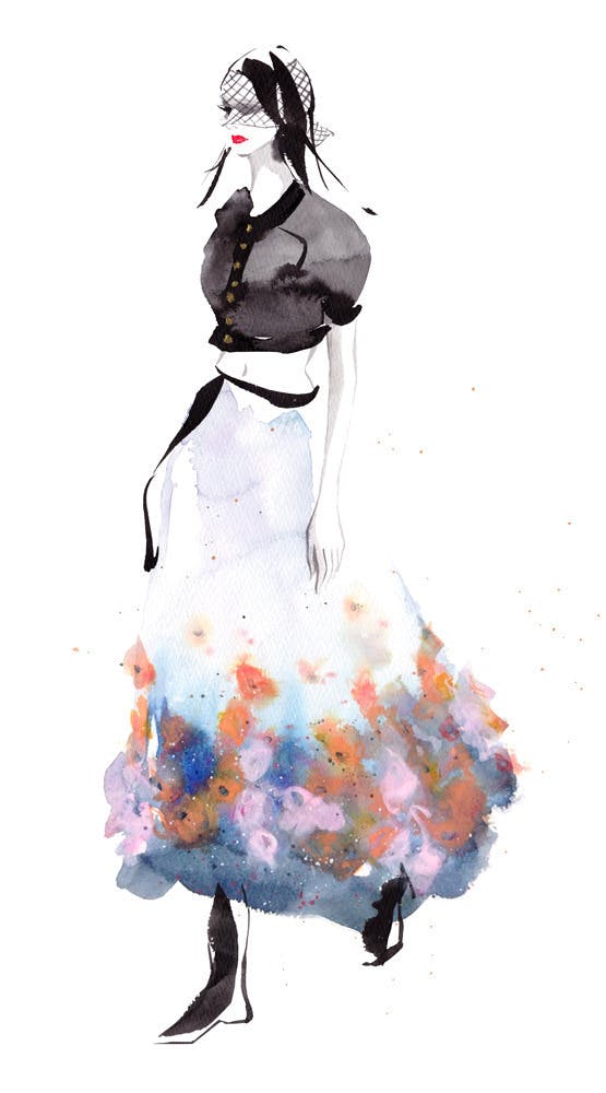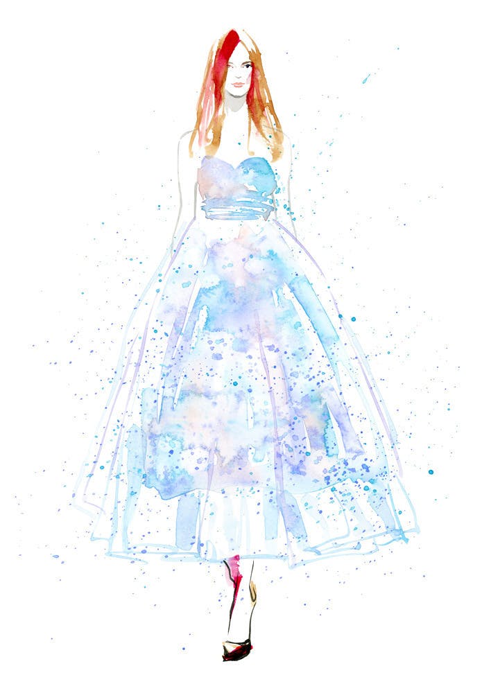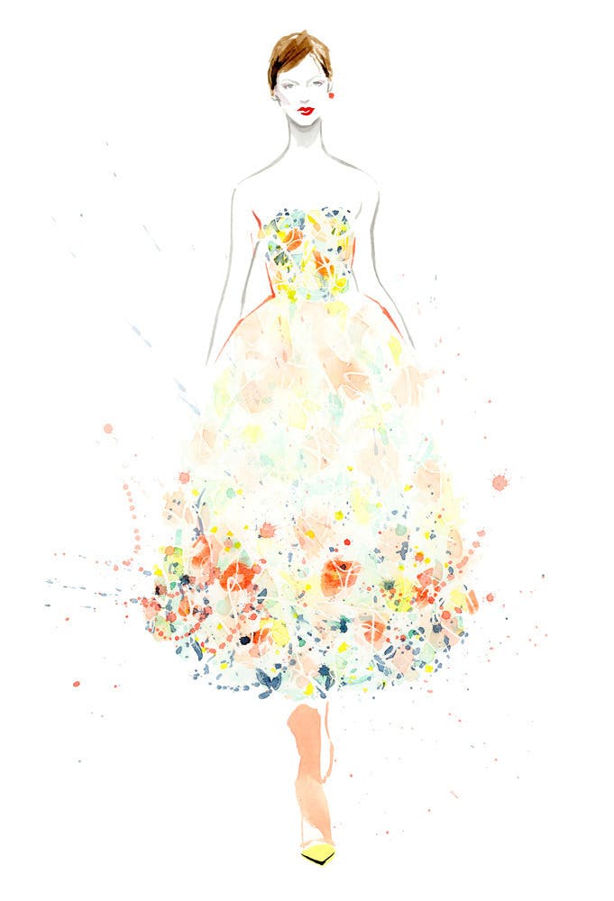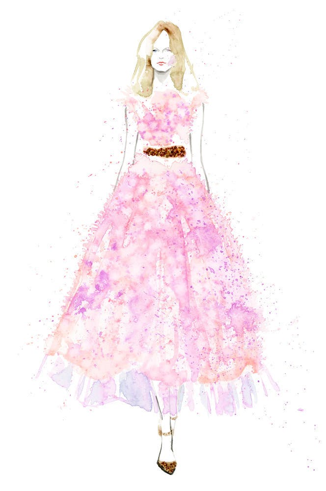 ブルーミングなドレス部分には蛍光色のピンクを使用し、色彩豊かに描きました。