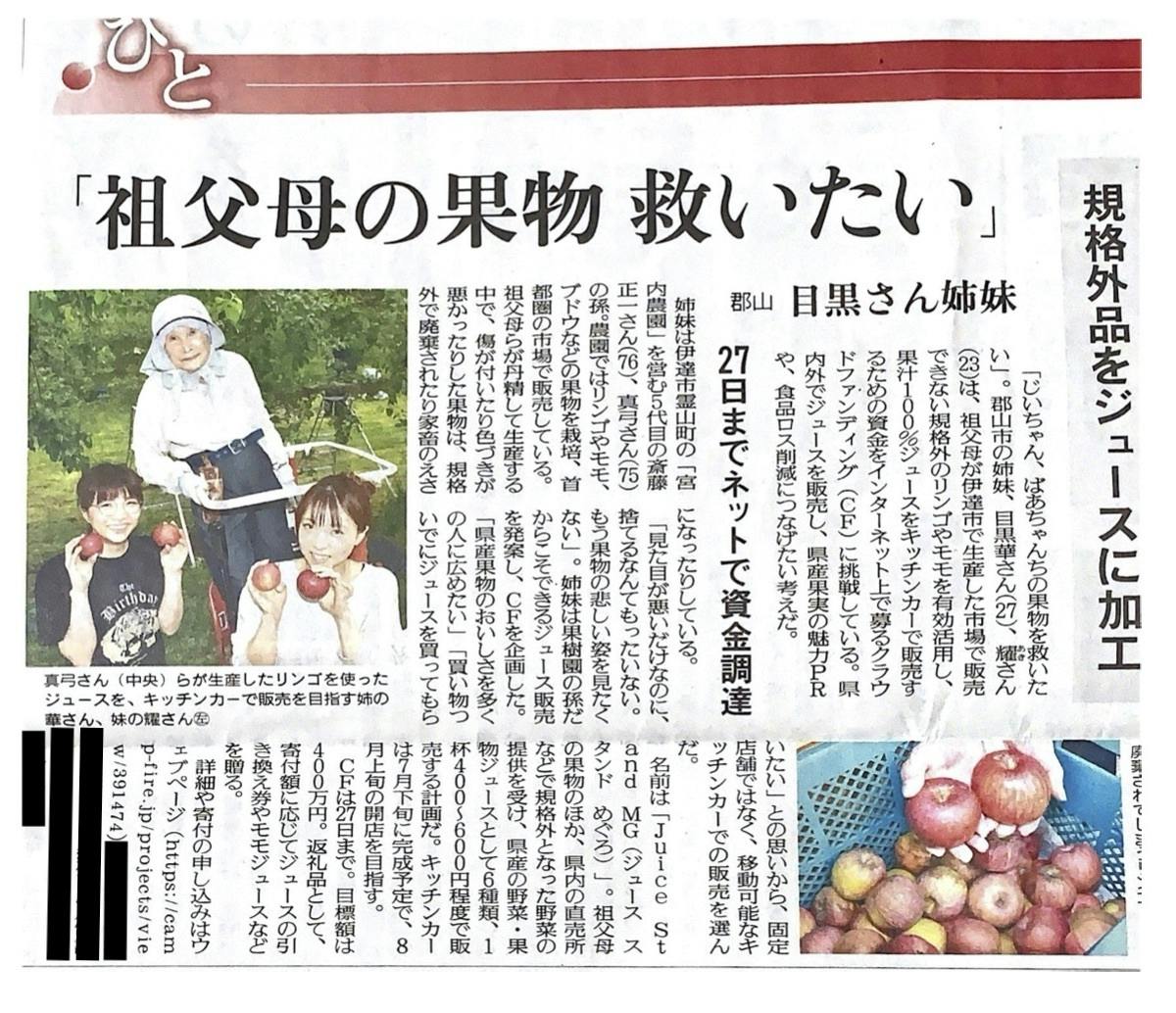 ばあちゃんちの果樹園にて取材でした。初めての取材で緊張しましたが、私たちの思いを記者さんに話しきれたと思います。紙面とネット両方あり、端的にまとめられていました。
