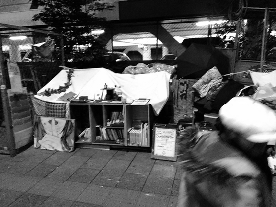 上の写真にもある通り私は渋谷の路上で生活している人と話をし、彼の居場所に本棚を置かせてもらいました。その本棚はそこを通る人に使われ、少しずつ会話が生まれていきました。少しずつではありますが、そこにあった見えない壁がだんだんと壊れていきました。このプロジェクトは路上で生活している人とそこを通る人とをつなぐ仕組みをつくり、見えない壁を壊すためのプロジェクトです。どんな仕組みになるかは路上に生活している人の人間性と彼らの居場所の場所性によって変わってきます。