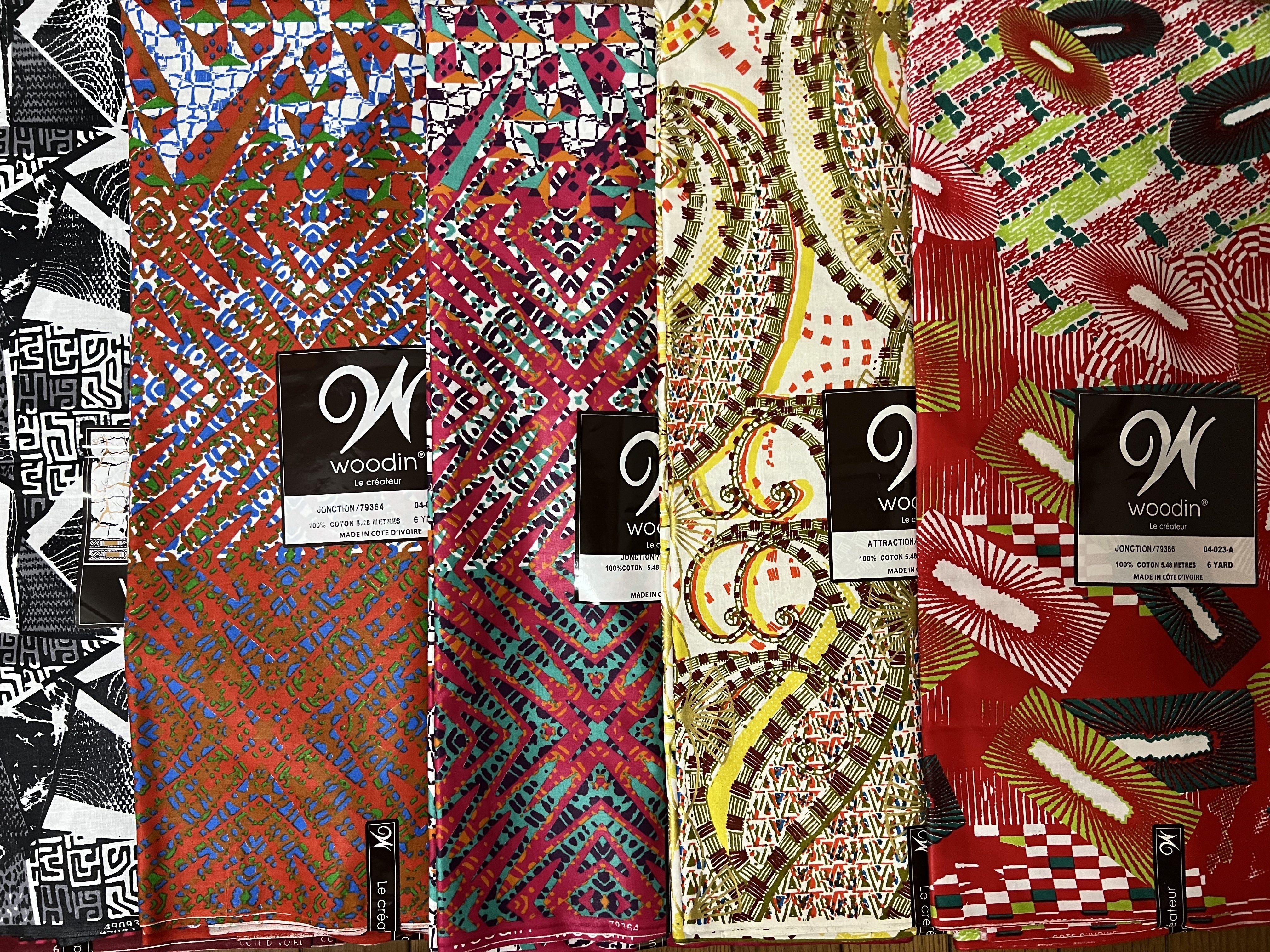セネガルの布屋さんの布を1ヤード単位、Woodinの布を0.5ヤード単位で販売いたします。
