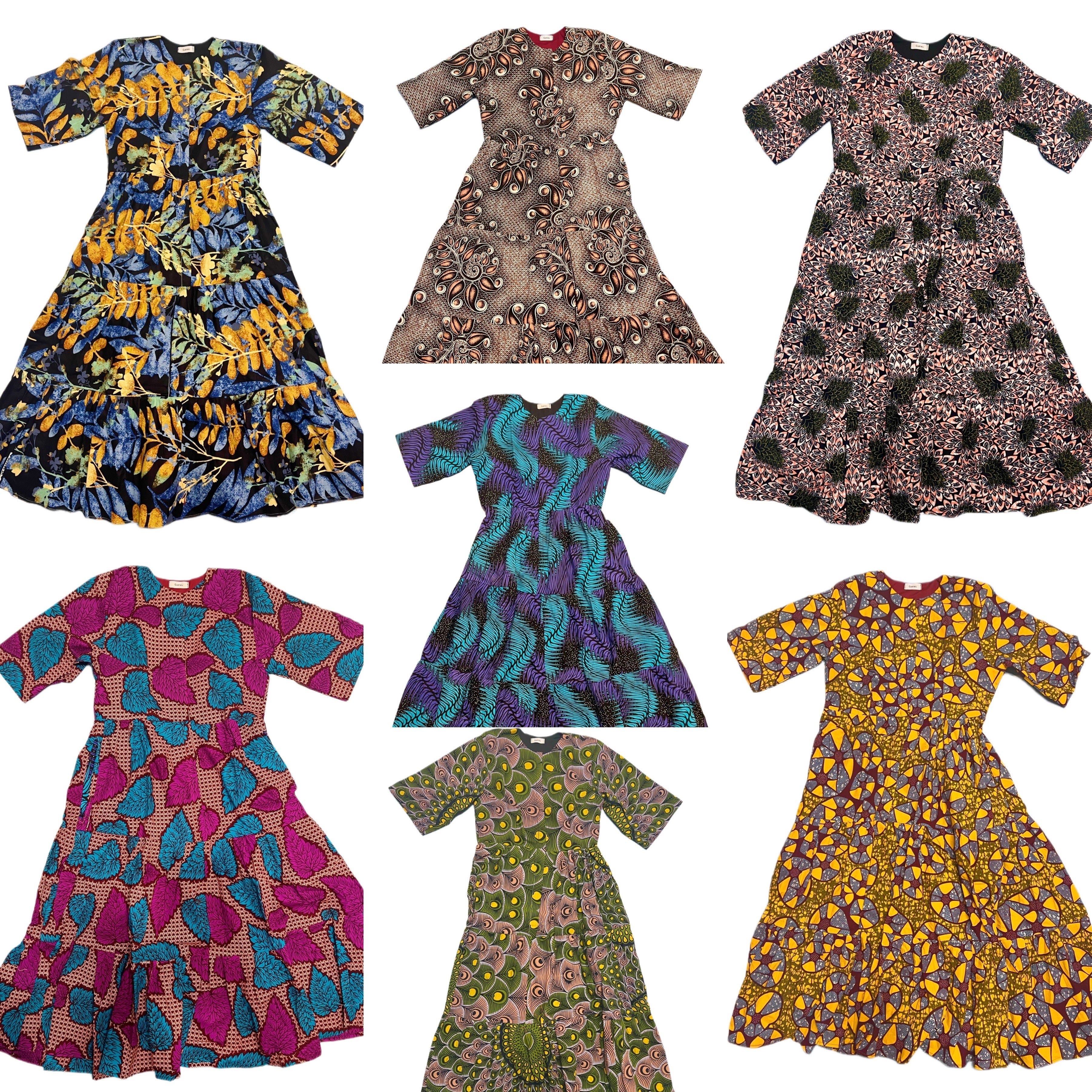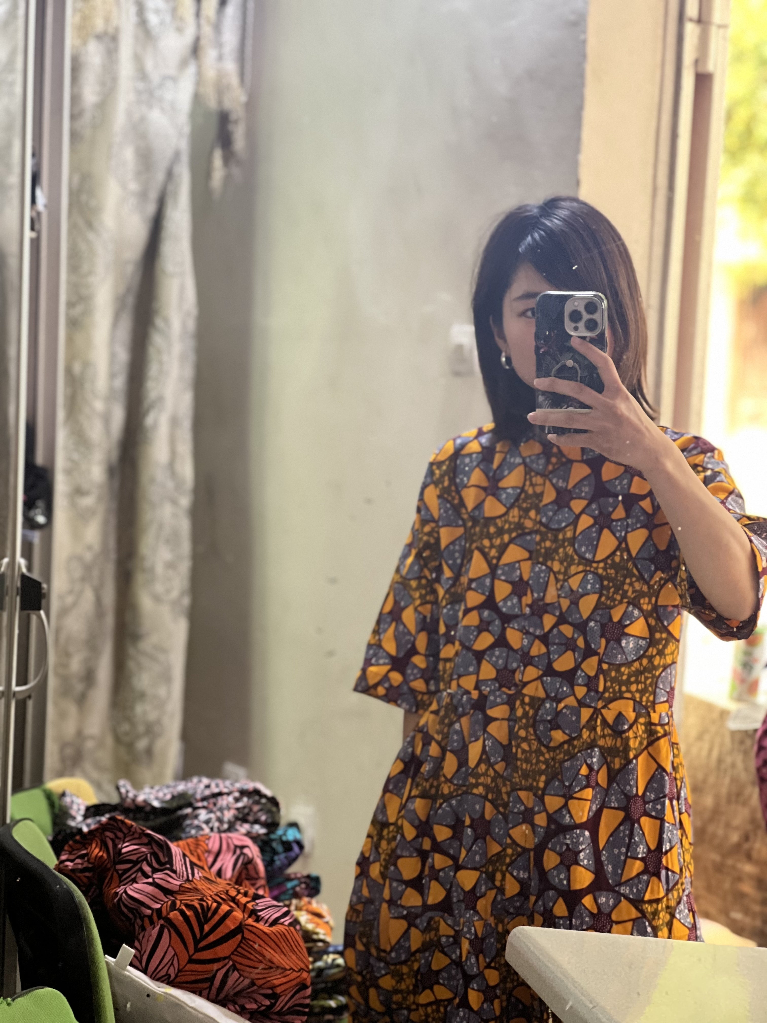 ※セネガルの布屋さんで仕入れた布を使用しております。Uniwax, Vlisco, Woodinの布を使ったお洋服は今回制作しておりません。(Woodinは既製服を販売いたします)