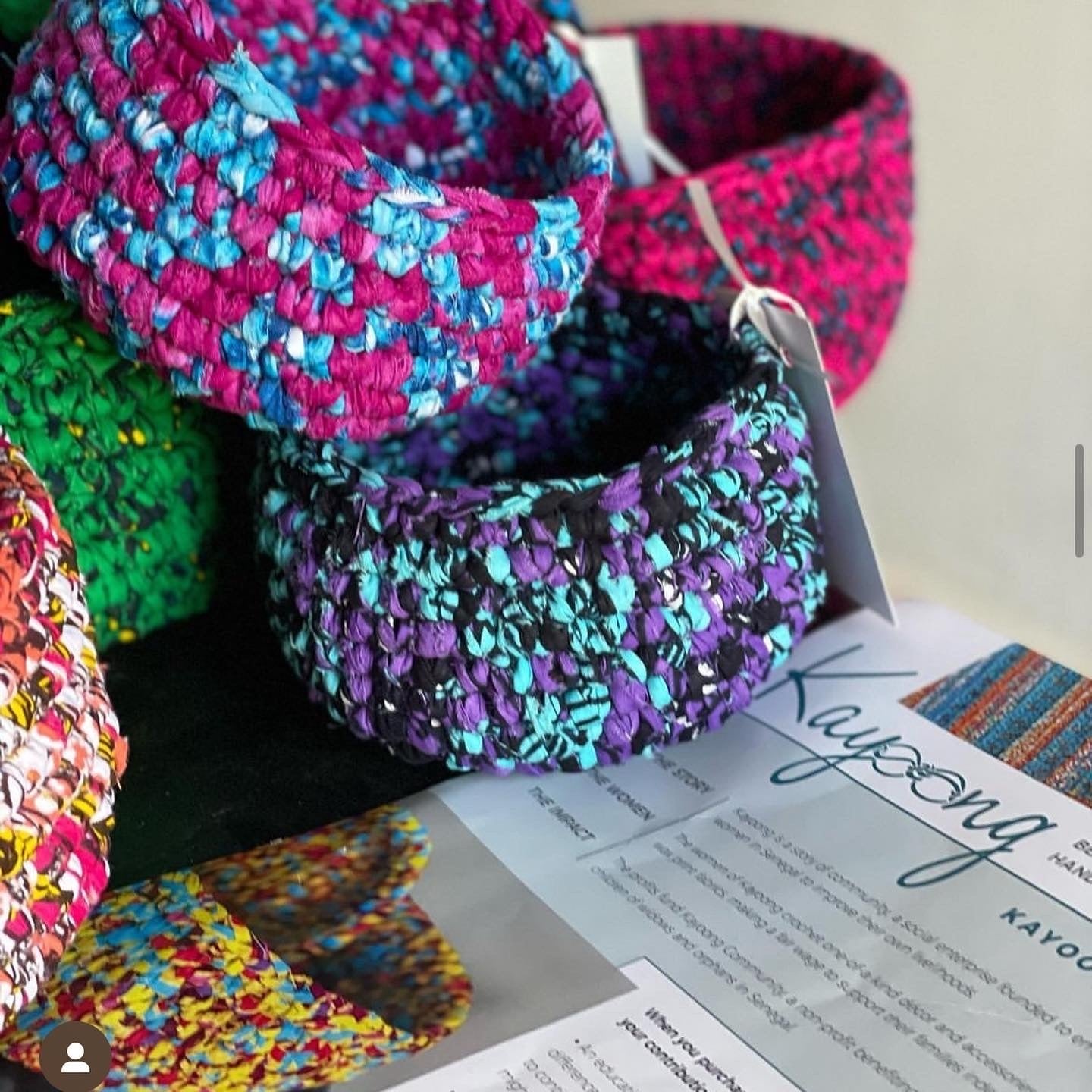 セネガルの女性たちがアフリカ布を裂き編みしたカゴを数量限定で販売いたします。
