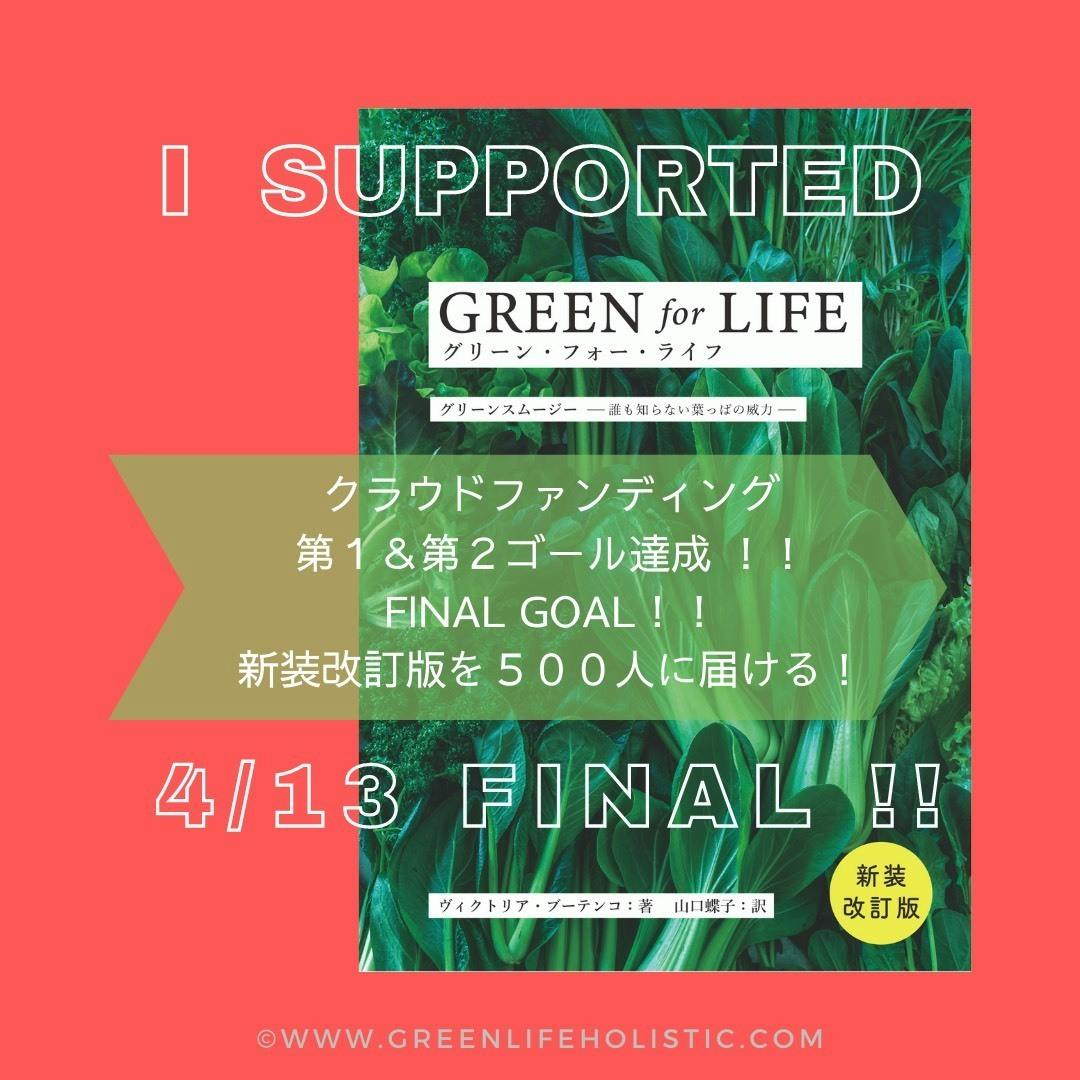 3日目チャレンジ終了から、新装改訂版「グリーン・フォー・ライフ」のリターンへのご支援が増えています。みなさん、本当にありがとうございます‼︎目標の500冊までこのままの勢いで引き続きご支援、シェアをどうぞよろしくお願いいたします!!