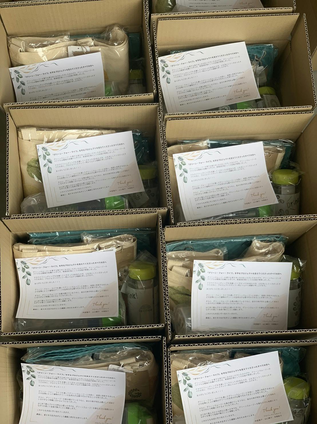 リターン第一弾の発送が完了いたしました!スペシャルbox(グリーン)と(ピンク)です。今日明日あたりお手元に届くかと思いますので、楽しみにしていてくださいね!