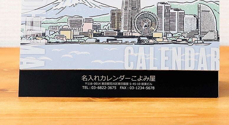おしゃれなカレンダーですが、社名や商品名を入れた名入れカレンダーとしてご活用いただけます。従来の名入れカレンダーは名入れを前面にしかできませんでしたが、『ご当地カレンダー』は前後両側にダブルで名入れができるので、どちら側から見ても社名を確認していただけるスグレものです!