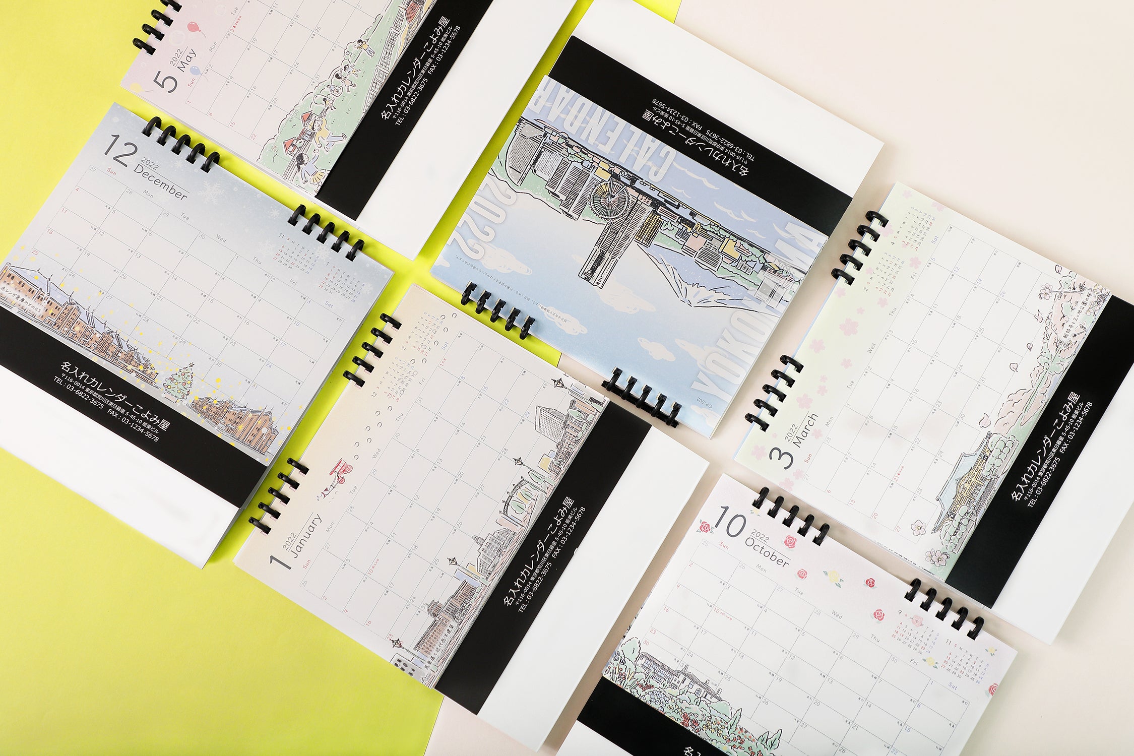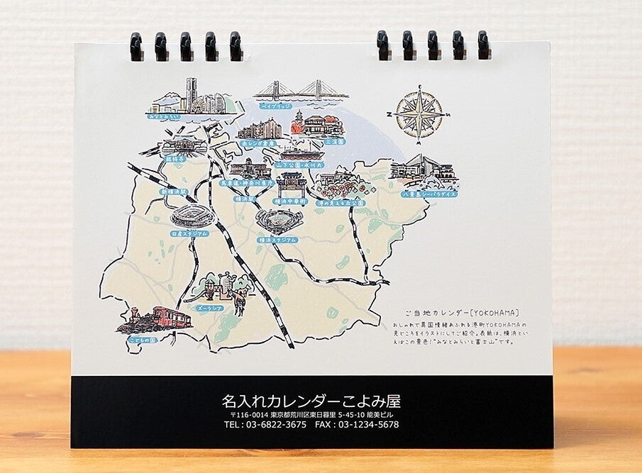 おしゃれで異国情緒あふれる港町YOKOHAMAの見どころをご紹介したカレンダー。横浜の方にとって大事な開港記念日も記載。地元横浜が大好きな人や地元愛が強い会社が多い横浜のみなさんに、まさにぴったりなカレンダーです。