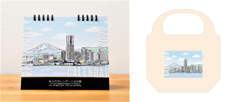 千代田区/中央区/横浜市、それぞれ1 冊のお試し3 冊セットに、ご当地カレンダー表紙のイラストがそのままデザインされた特製エコバックが付きます。