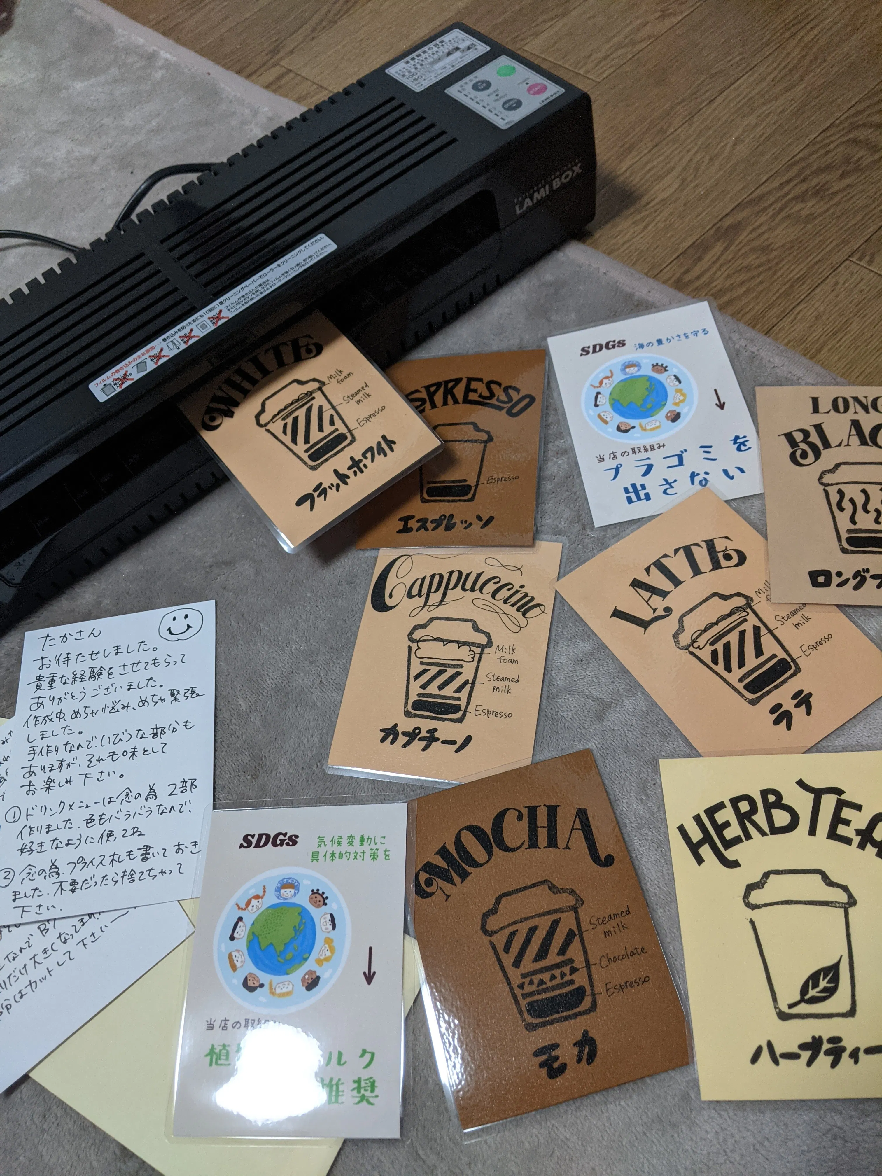 手書きで書いてくれたものですがとってもいいアジが出ててコーヒースタンドにピッタリなんです(^^)