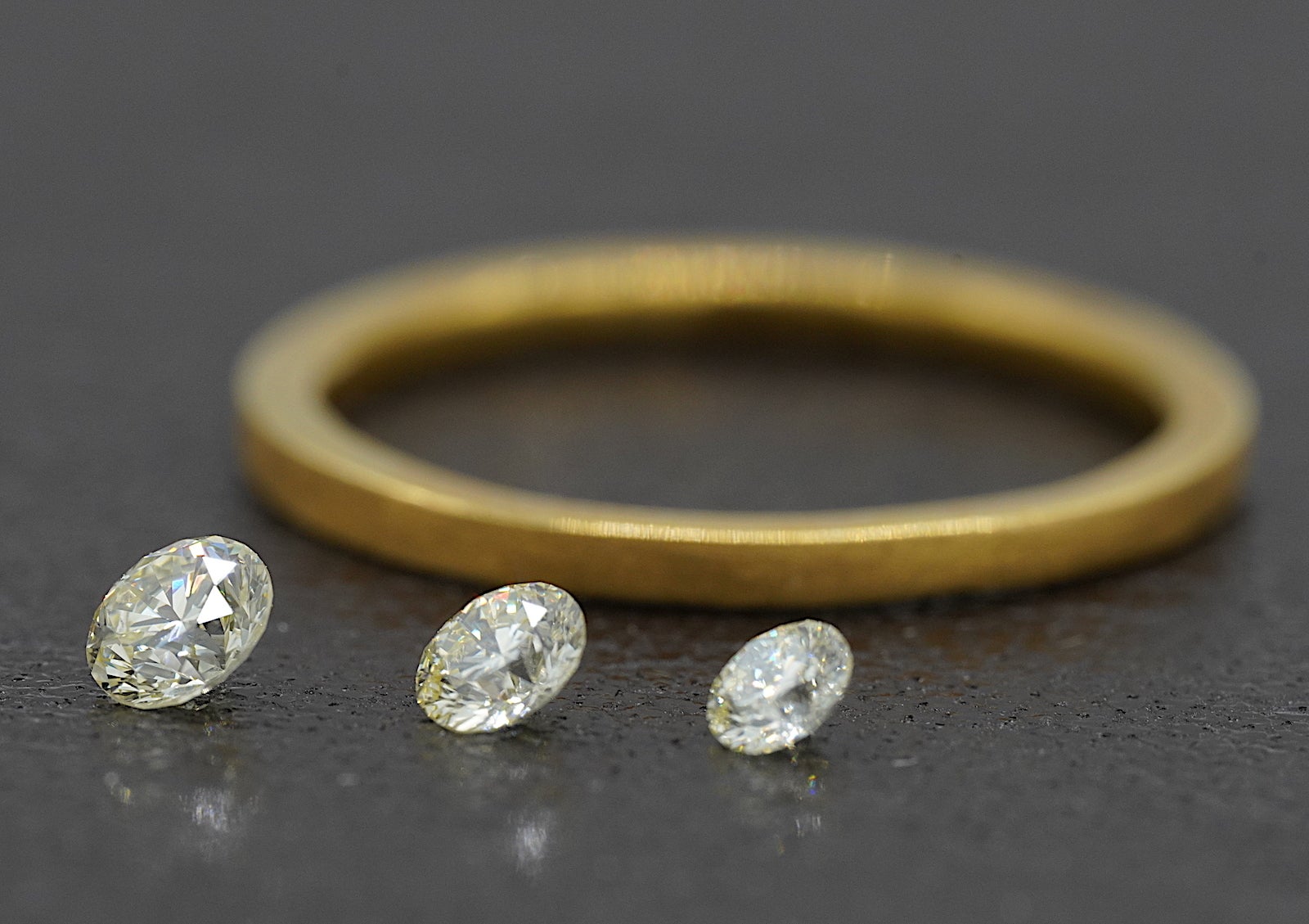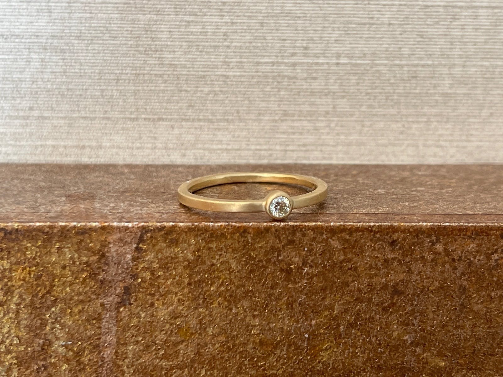 ・ダイヤモンドの石留め、リングの仕上げ加工、刻印は、全てひとつひとつ丁寧に手作業で行います。石留めは覆輪留め、リングとダイヤモンドの一体感がある留め方で、今回のダイヤモンドサイズを選ぶことで、衣服に引っかかりにくいデザインとなり、日常でも着けやすくなっています。