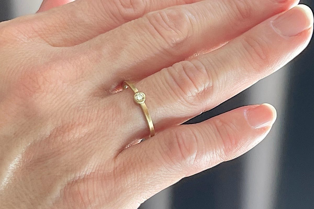 ダイヤモンドの重さは0.08カラット、直径は約3ミリ。