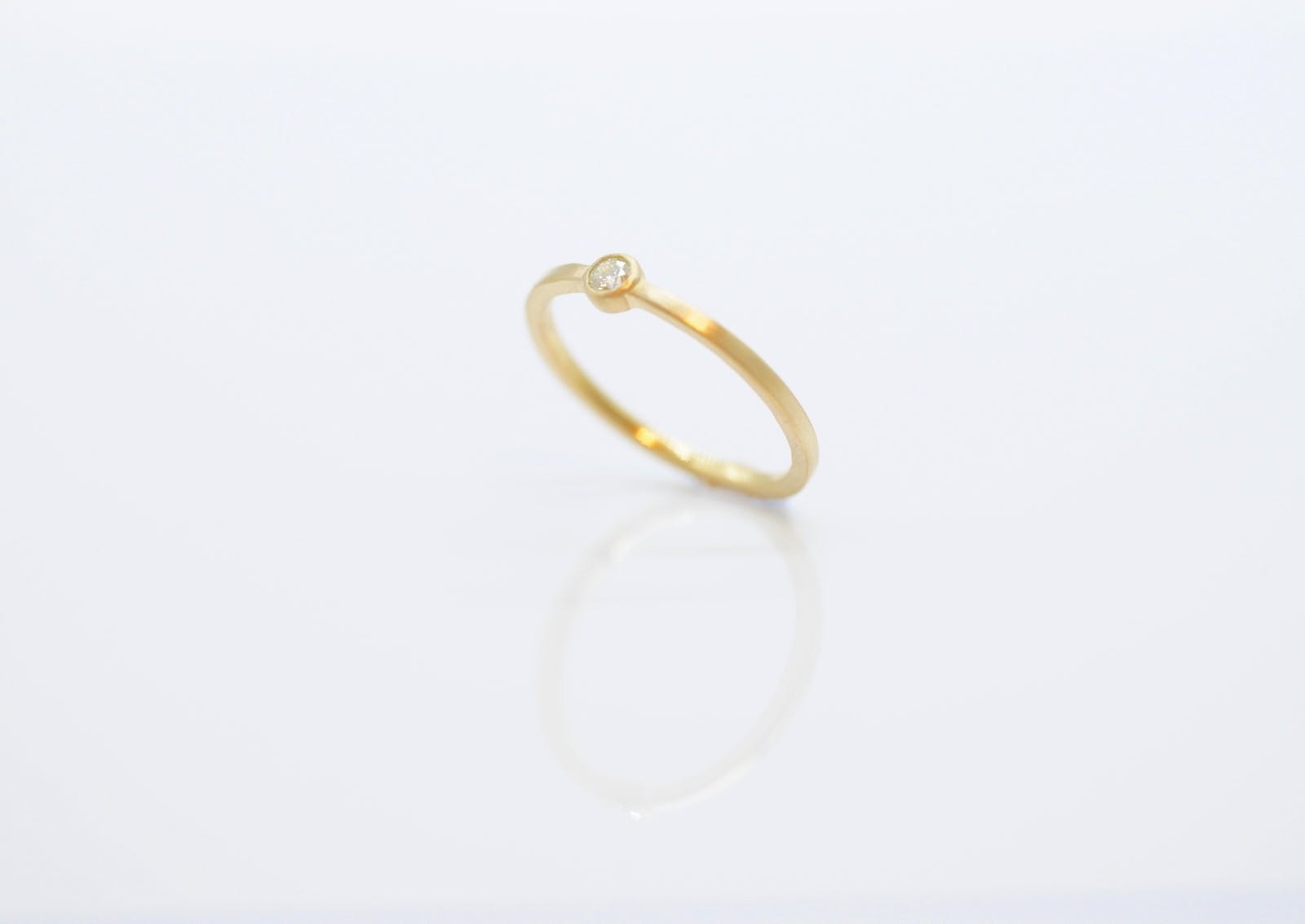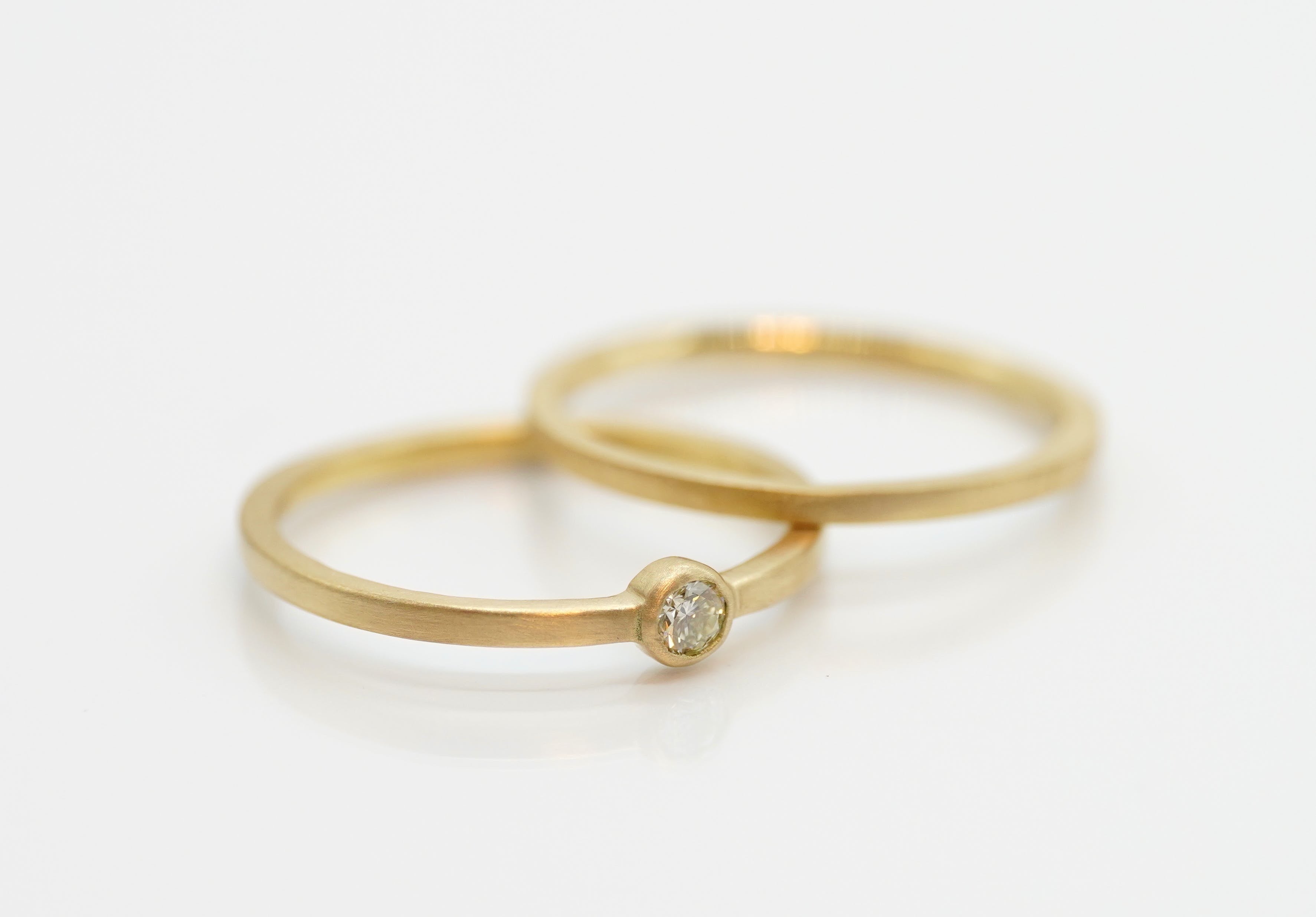 また透明感のあるレモンイエローダイヤモンドをより目立たせるために、マット加工を施し、上品な仕上げの中でダイヤモンドが目立つリングになりました。リングは細身なので流行りの重ね付けにもマッチします。