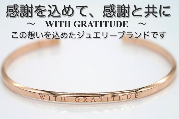 シンプルなデザインに、atelier-namiのオリジナルモチーフ「WITH GRATITUDE」〜感謝を込めて・感謝と共に〜の英訳文字を表面にレーザー彫刻したバングルです。