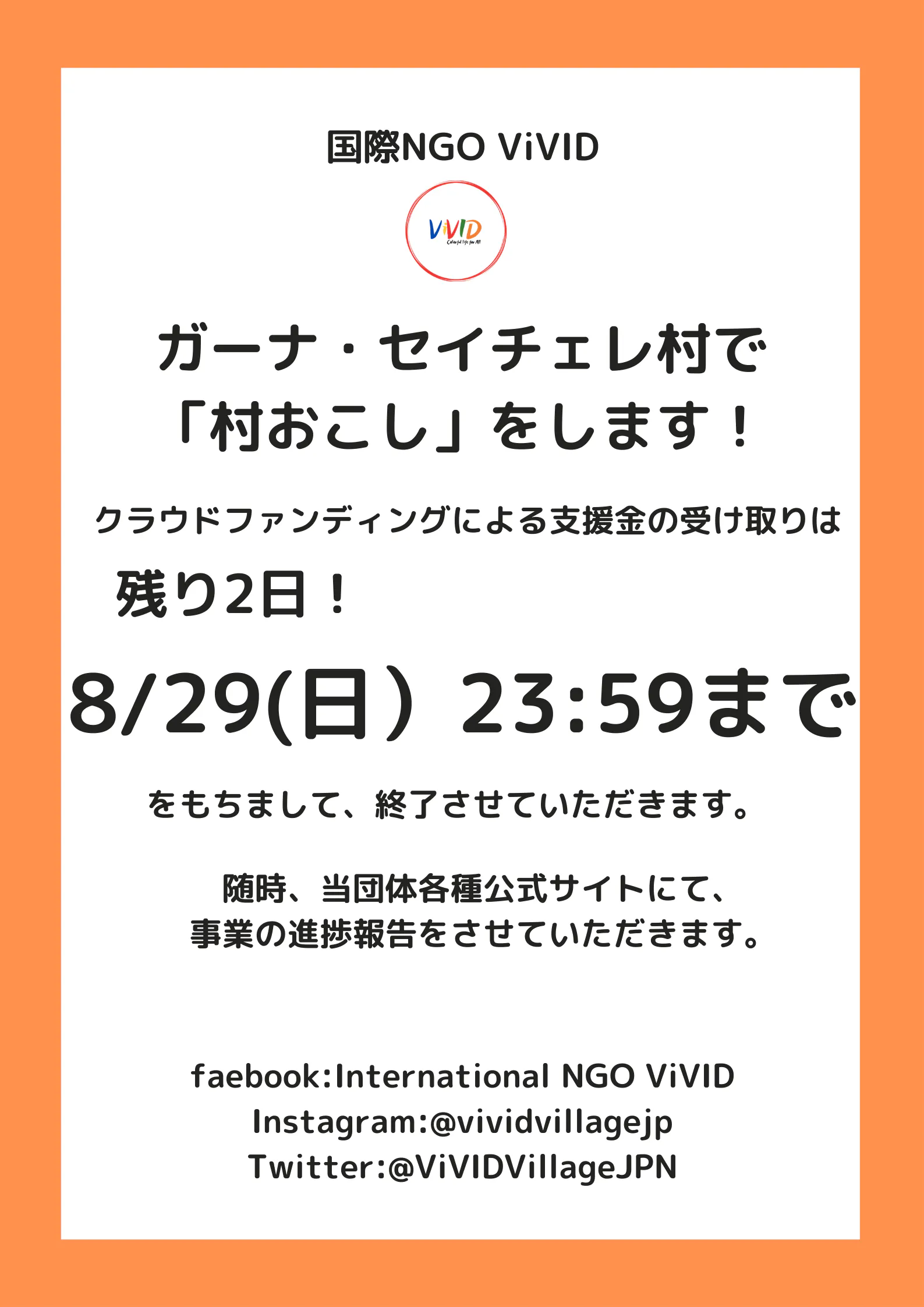 ガーナの人口5000人という小さな村、セイチェレ村の住民達が、私たちViVIDと共に同じ世界を目指して歩めば、村だけでなく、国全体や世界にも良い影響を与えることが出来るかもしれません。