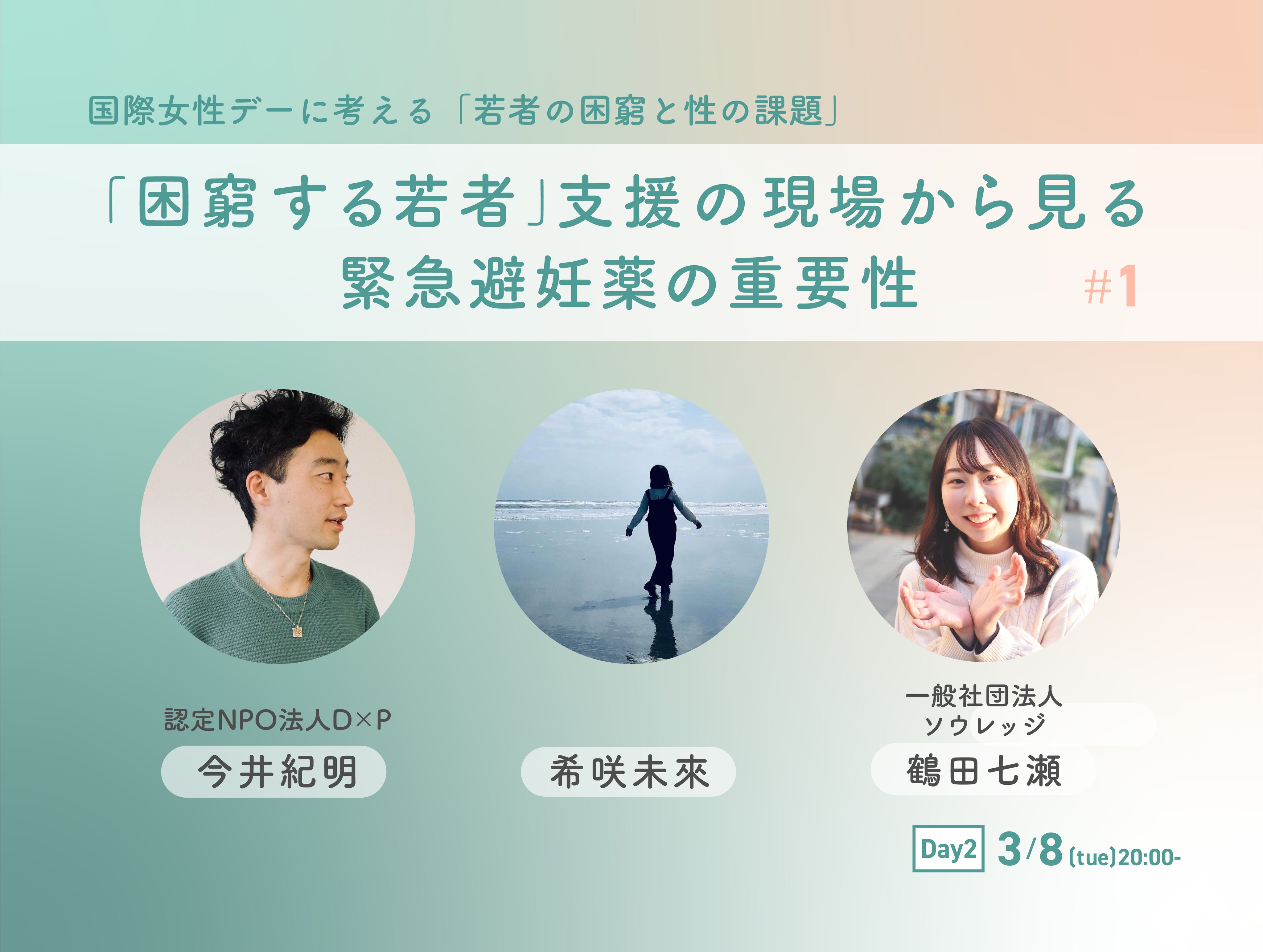 3月8日は国際女性デー。「性教育への最初の1歩を届ける」を理念にしている一般社団法人ソウレッジが「国際女性デーに考える『若者の困窮と性の課題』」と題し、2日間のオンラインイベントを開催しました。2日目のテーマは『「困窮する若者」支援の現場から見る、緊急避妊薬の重要性』。若者支援における「性」の課題を、当事者と一緒に考えていきます。