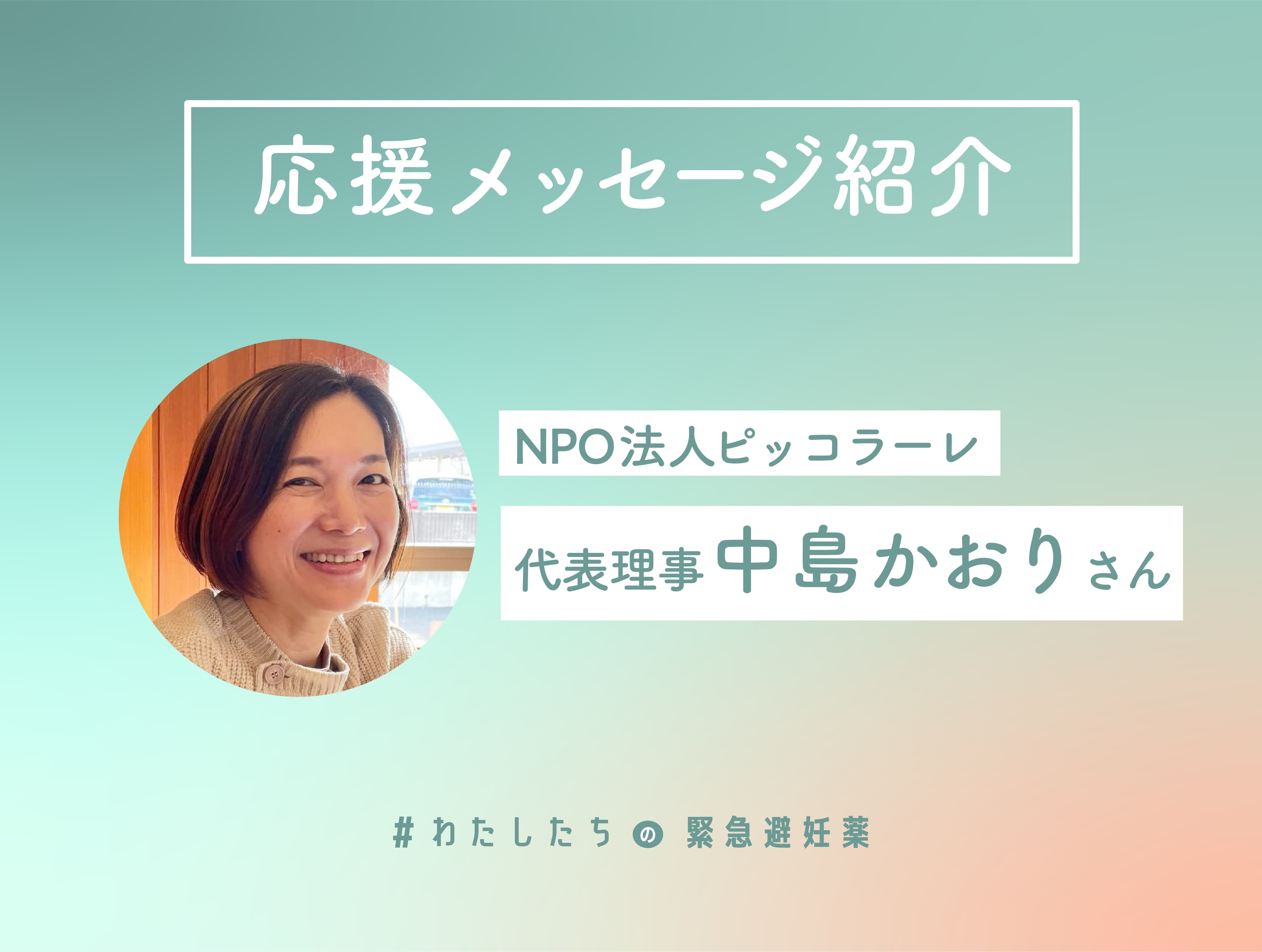 今回は、「にんしん」をきっかけに、誰もが孤立することなく、自由に幸せに生きることができる社会の実現を目指して活動されているNPO法人ピッコラーレの代表であり、助産師の中島かおりさんから応援メッセージをいただきました!