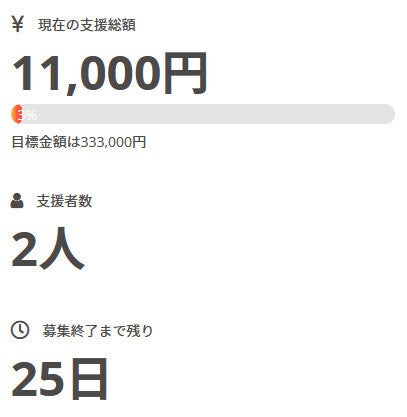 ご挨拶と御礼 2021/02/17 17:45 お世話になっております。 名無しの東北県人です。 今回のクラウドファンディングも何卒宜しくお願い致します。 現時点での状況ですが、早速2名の方がパトロンとなって下さいました。 現在の調達率は3%となっております。 本当にありがとうございます。 引き続き、何卒宜しくお願い致します。 名無しの東北県人
