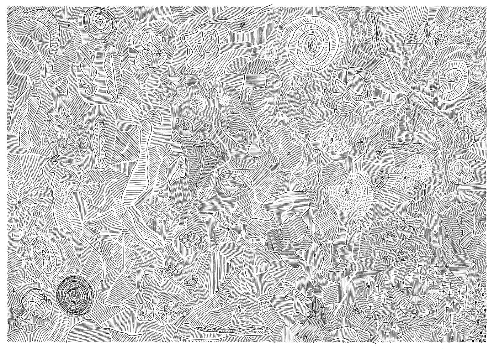 2011〜2016年頃、誰に見せるでもなく、何処で発表するでもなく、ただただ描き続けていた『森に行った』という漫画?。2018年、それを武蔵野美術大学での恩師でもある袴田京太朗さんが、ちゃんと本にしてみたらいいじゃん、と提案、企画してくださいました。とてもとても嬉しくって、出来上がった本です。文字も言葉もなく、ただ淡々と森が描かれています。この本のデザインも牧くんにお願いしました。