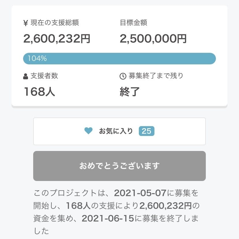 クラウドファンディング 達成しました