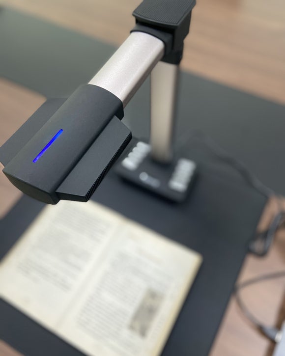 見開きページをスキャンする際、指または指サックでページを押さえながらフットペダルを踏むだけで簡単かつ効率的にスキャンを行えます。