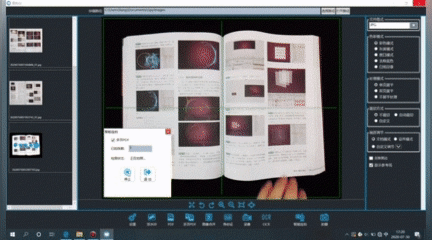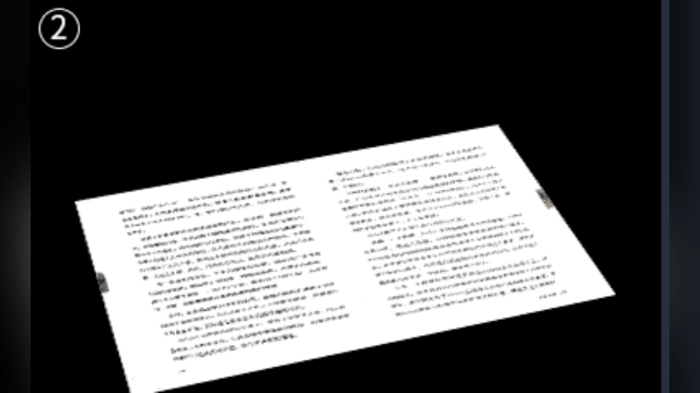 ▲曲面平坦化機能で書籍の見開き中央部分のゆがみ自動補正、さらに全体の歪みを補正します。