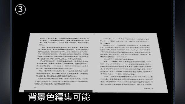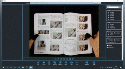 ▲曲面平坦化機能で書籍の見開き中央部分のゆがみ自動補正、さらに全体の歪みを補正します。