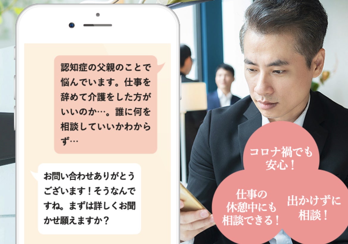 LINEのチャットを利用していて、誰もが“いつでも”“どこからでも”無料で介護の相談が出来ます。