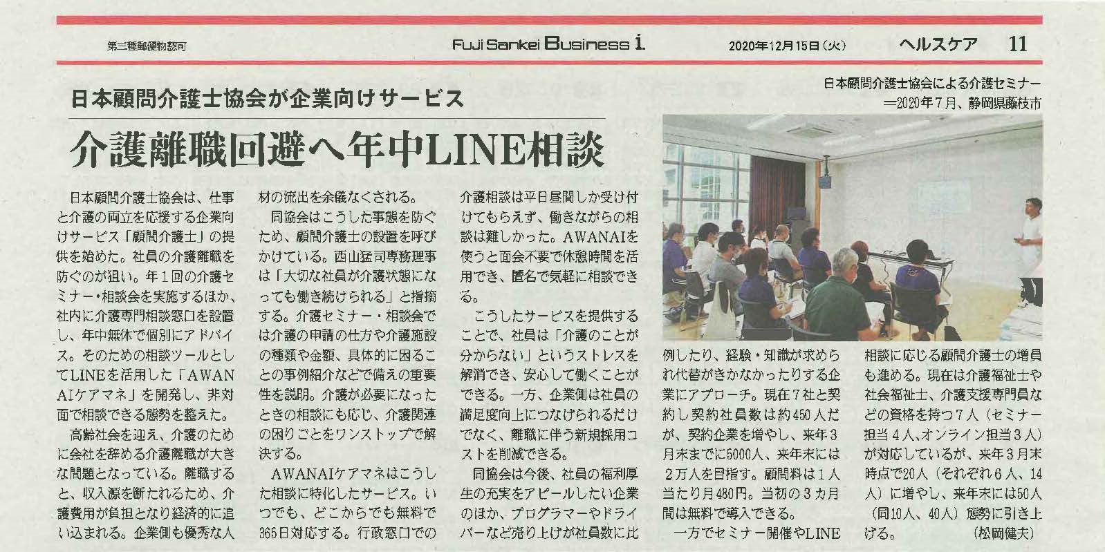 フジサンケイ ビジネスアイ 2020年12月15日号掲載 無断転載不可
