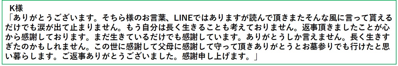 当サービスをスタートしてからまだ約8か月ですが、ありがたいことに日々たくさんの方にご相談いただいております。そして同じくらいの感謝のメッセージも受け取っております。