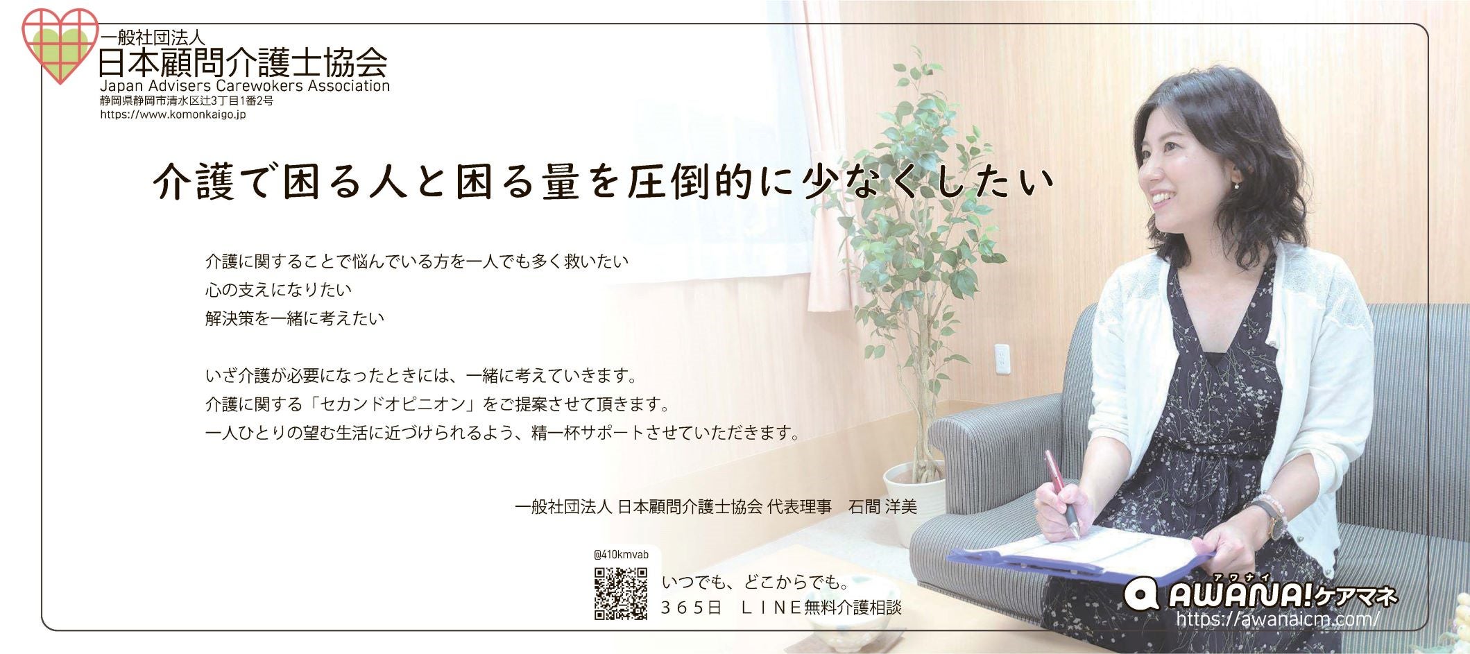 初めまして。「介護で困る人と困る量を圧倒的に少なくする」を目標に掲げ活動をしている一般社団法人 日本顧問介護士協会 代表理事の石間洋美と申します。