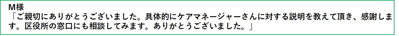介護の悩みを微力ながら解決に導くべくサポートができたのかなとうれしい気持ちとともに大変誇らしく思います。