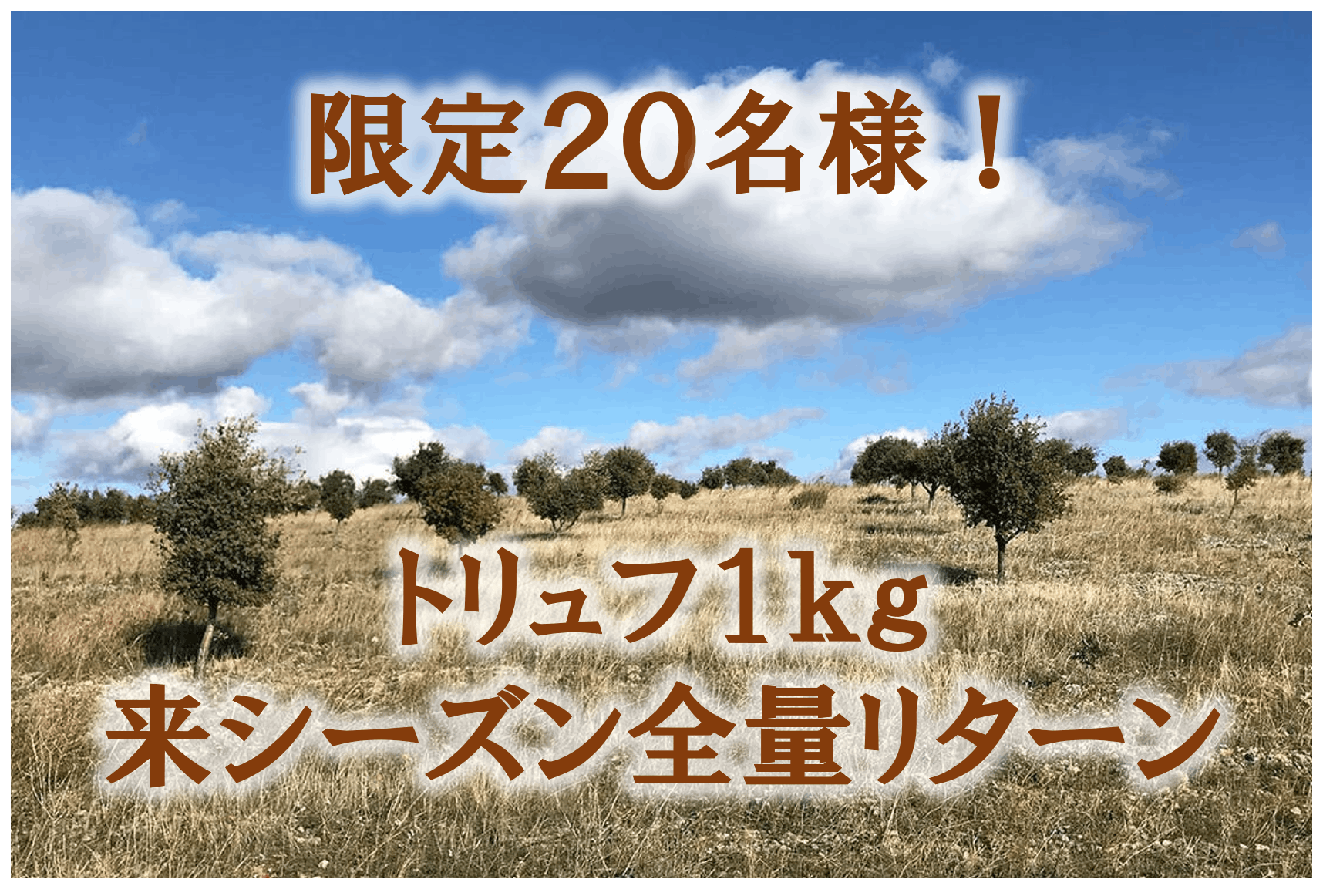 恐らく予定通りの収穫スケジュールであれば、目標の10kgは楽に達成しただろうことから、来シーズンの試算目標値の15kg/ヘクタール、当社所有の2ヘクタールの畑で30kgの収穫も達成可能と判断し、余裕を見て20名様限定で、1kgのトリュフを複数年に分けず、来シーズン全量リターンさせて頂きます。