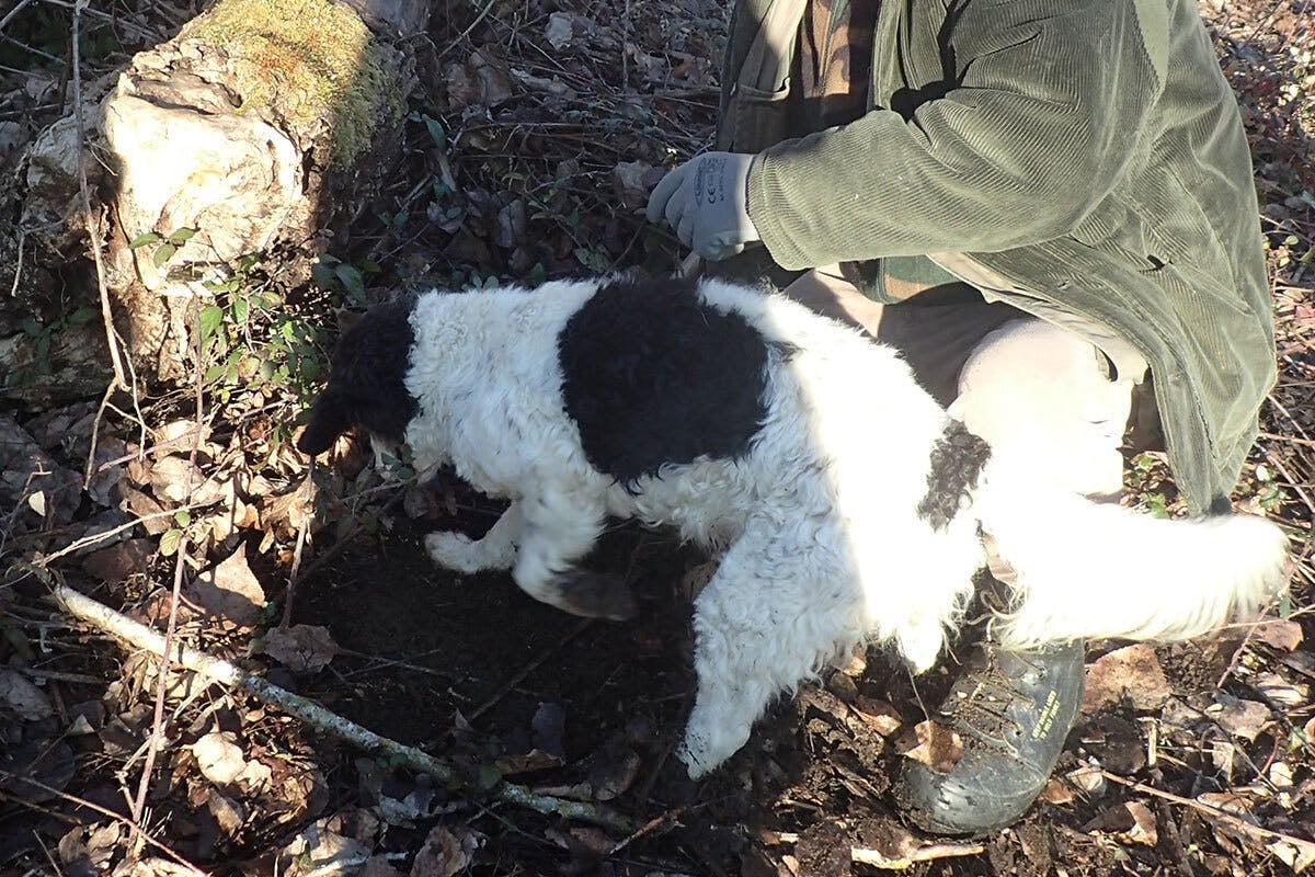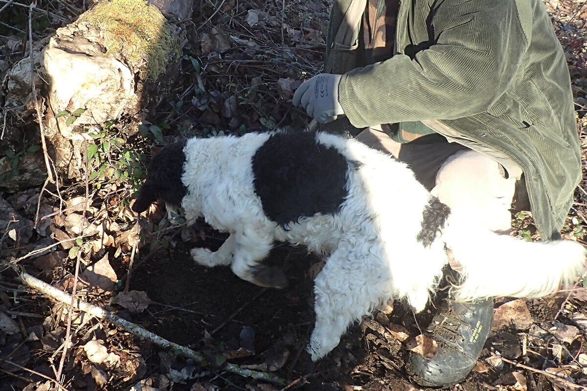 犬が探した場所を掘ると、トリュフが次々に収穫できました!