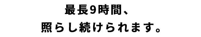 最長9時間照らし続けられるので、(電球色時)
