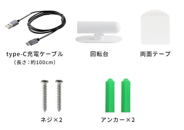 ※両面テープを使用できない場合や落下の可能性がある場合は付属のネジ、アンカーを使用して設置してください。
