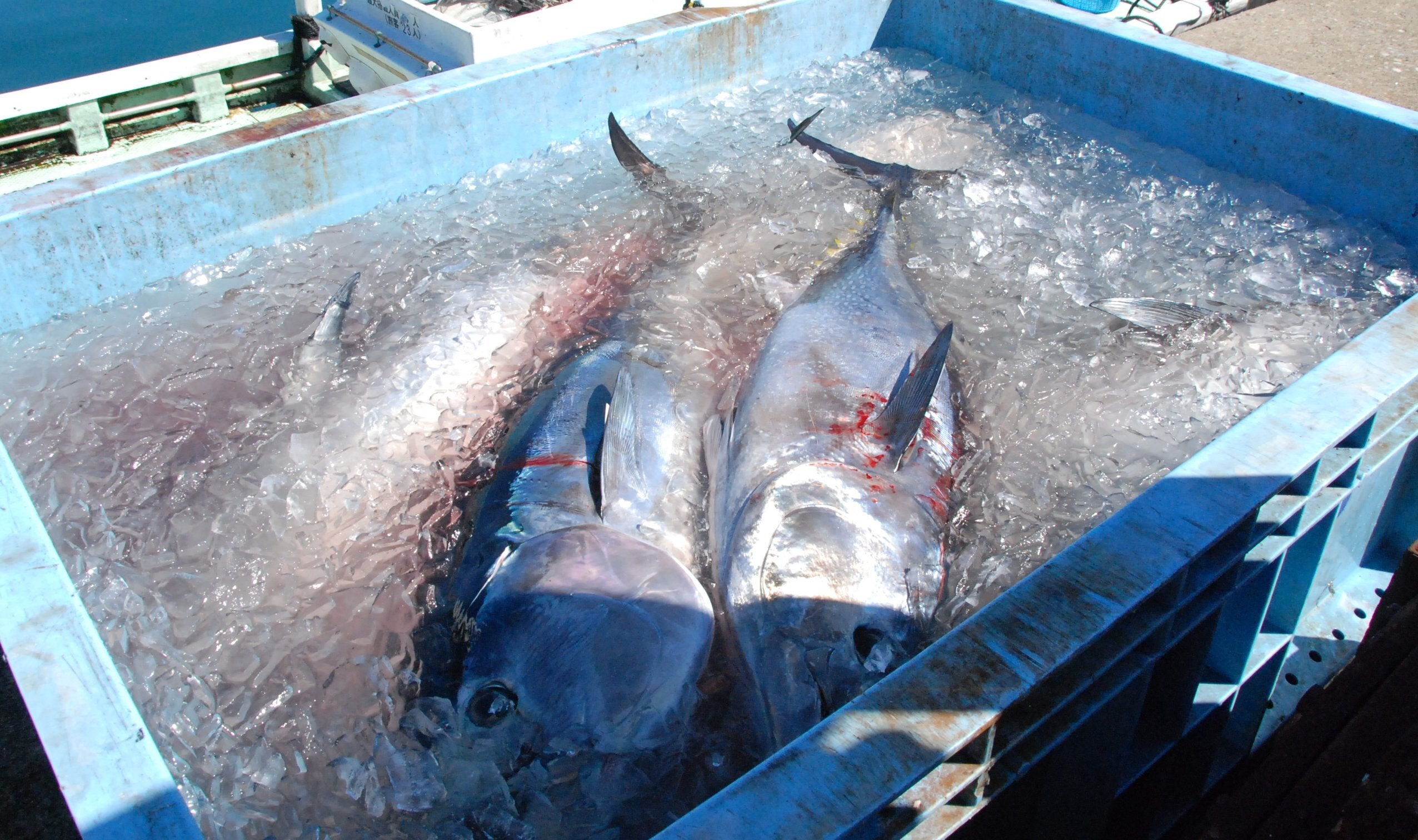 ④エラと内臓を除去し、氷海水にて魚体を冷やします。